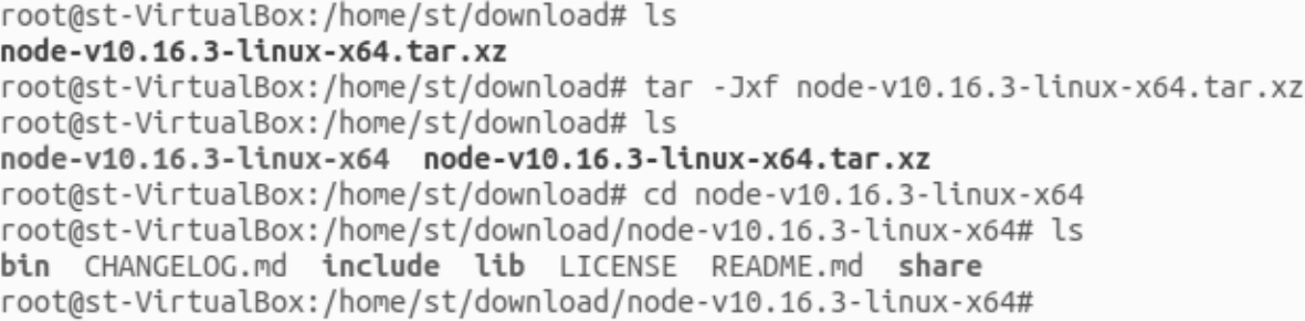 tar -Jxf node-v10.16.3-linux-x64.tar.xz