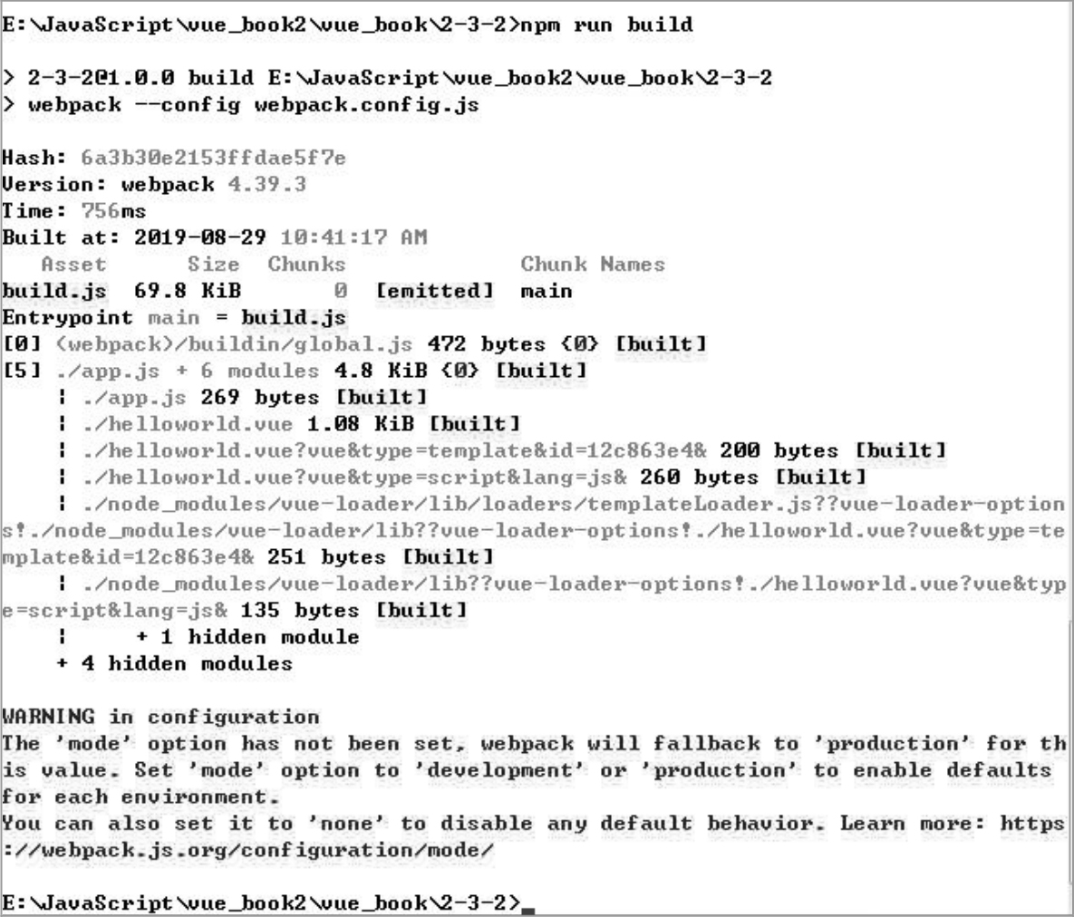 在命令行窗口中使用如下命令完成打包操作,执行效果如图2-24所示。