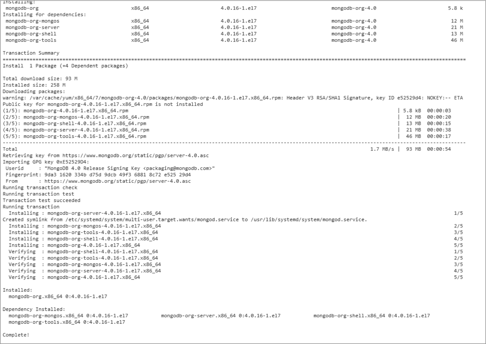 保存完成之后,使用如下命令安装新版本的MongoDB: