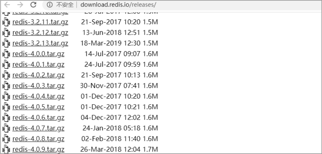 在http://download.redis.io/releases/中有很多不同版本的Redis安装包,可自行选择合适的版本,如图3-14所示。