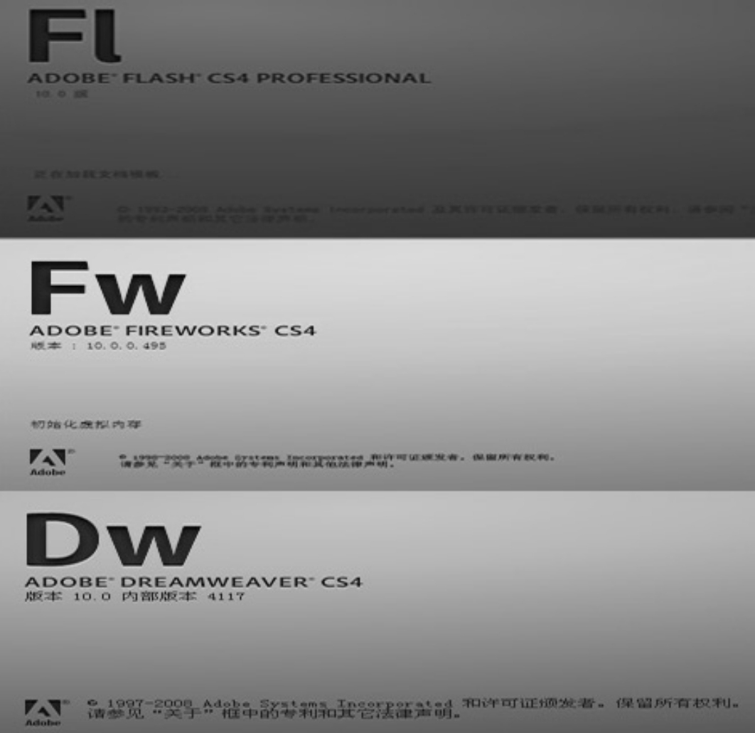 “网页三剑客”是一套强大的网页编辑工具,最初是由Macromedia公司开发出来的,由Dreamweaver(简称Dw)、Fireworks(简称Fw)和Flash三个软件组成,如图1-1所示。其经典的版本是8.0。