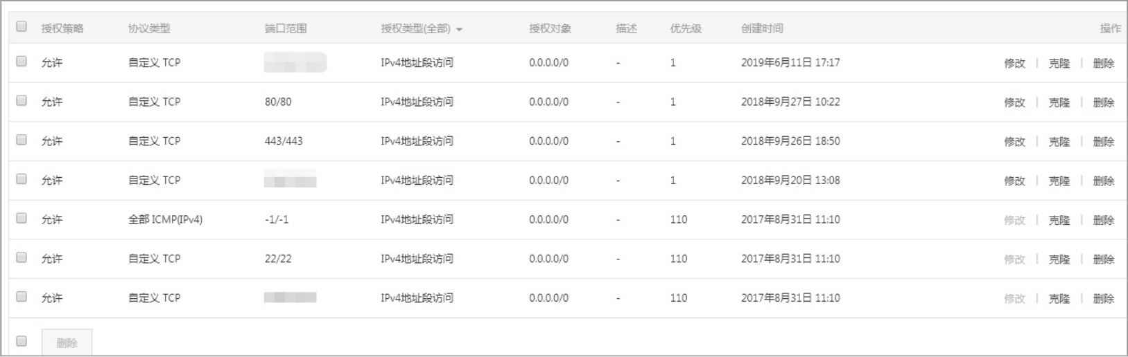 在这组配置中,80端口运行的是HTTP服务,如果希望对方访问网站,则需要开启该端口;443端口是支持HTTPS加密的网站端口;原本开启的22端口是需要远程连接的端口(不同的云服务器可能默认端口不同),如果直接取消该端口,则无法通过SSH或远程桌面的方式进行连接。