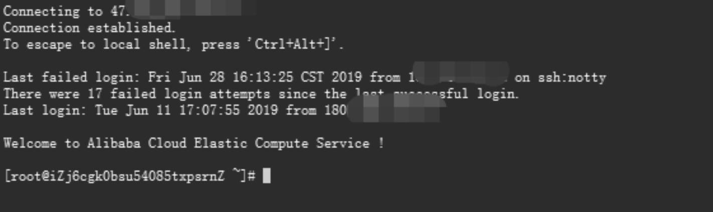 此时可以通过远程桌面(Windows)或SSH(Linux)的方式连接到该服务器,然后使用相关的软件或命令行进行操作。以Linux为例,连接成功后如图1-15所示。