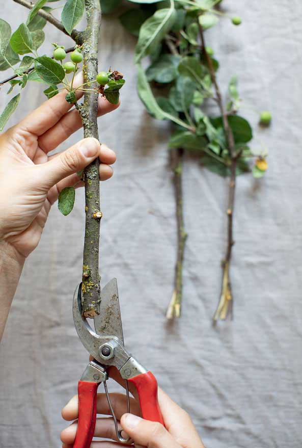 在适当的时间剪切 每个品种的鲜花在采摘时都有专门的特殊技巧,但一般的经验法则是,在花朵开到1/3∽1/2的时候制作切花。一旦有蜜蜂来光顾你的花丛,这些花就会凋谢得更快。对于叶材来说,一个很重要的技巧是,要等到茎成熟结实以后再进行采摘。太嫩的茎秆无法在花瓶里持续很长时间,往往很快就枯萎了。