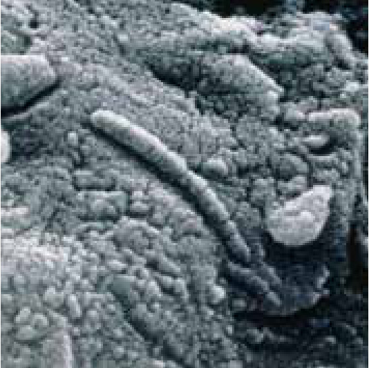第四个证据: 这也是最直观、最受媒体欢迎的证据,就是那张电子显微镜拍摄的一个细菌状物质的照片。