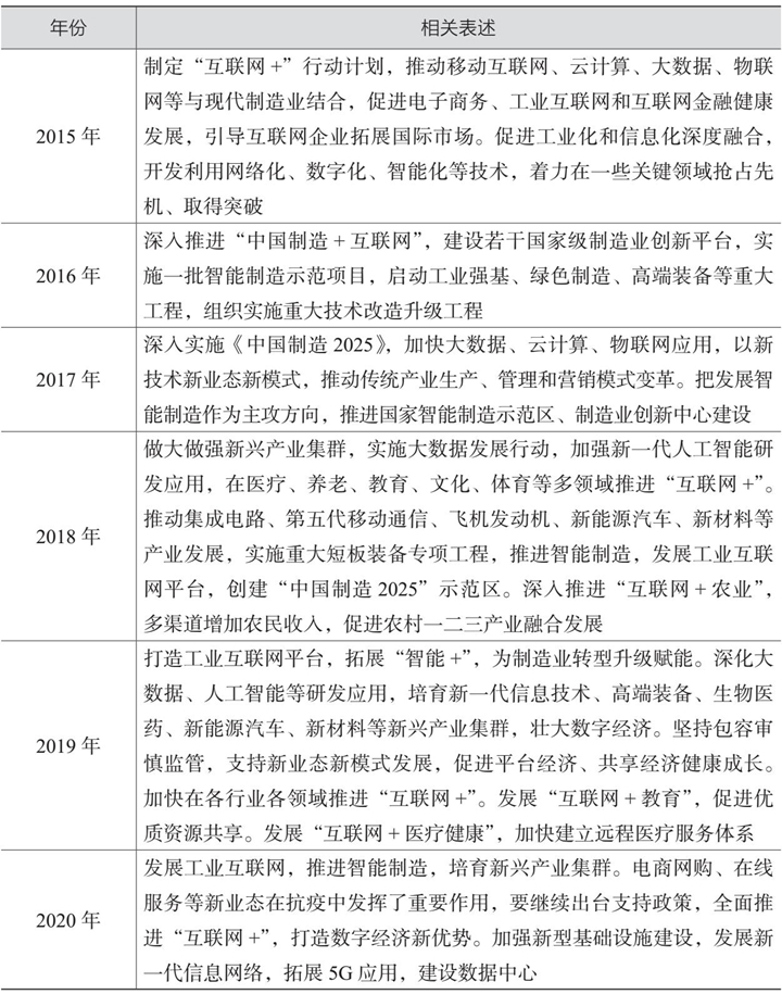 表1.2 历年国务院政府工作报告中与产业数字化相关的表述