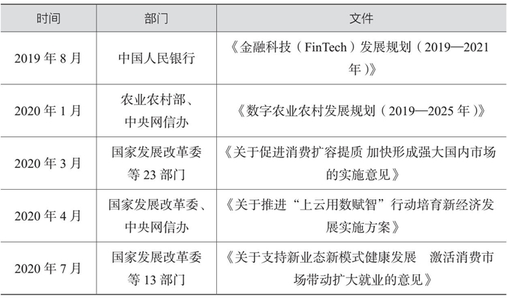 表1.3 近年来国务院及有关部门发布的数字经济发展