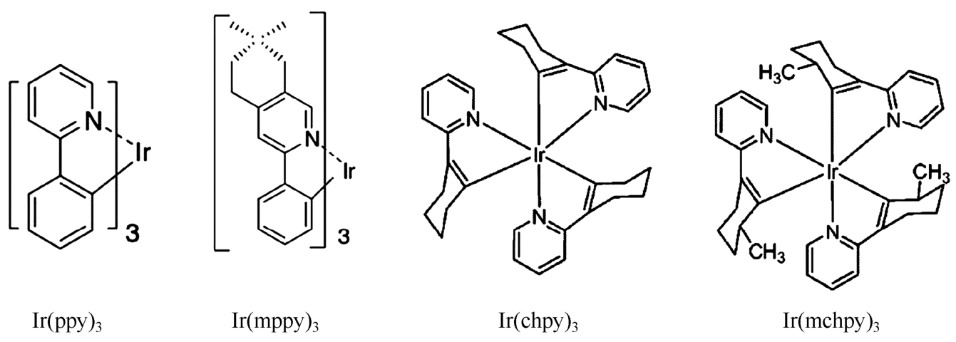 图3-2 几种常用的Ir配合物绿光小分子磷光材料的分子结构