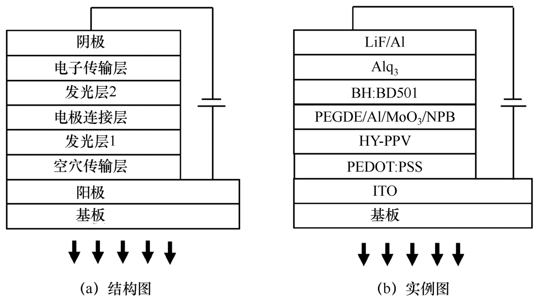 为提高器件的性能,各种更复杂的器件结构不断出现。但由于大多数有机材料具有绝缘的特性,只有在很高的电场强度(约10 V/cm)下才能使载流子从一个分子传输到另一个分子,所以有机半导体薄膜的总厚度不能超过百纳米级,否则器件的驱动电压将会更高。