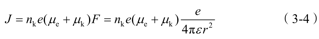 具体地,假设电子静止不动,若电子和空穴的迁移率原为 μ e 和 μ k ,则阳极处的空穴将以( μ e +μ k )的相对迁移率向电子移动,由此形成的电流密度计算如下