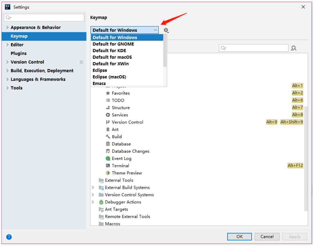 IntelliJ IDEA会根据环境自动选择预定义的键盘映射。确保它与你使用的操作系统匹配,或者选择与你习惯使用的另一种IDE或编辑器(例如Eclipse或NetBeans)中的快捷方式匹配的操作系统。
