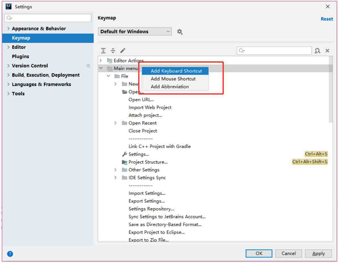 修改任何快捷方式时,IntelliJ IDEA都会创建当前所选键盘映射的副本,你可以对其进行配置。单击