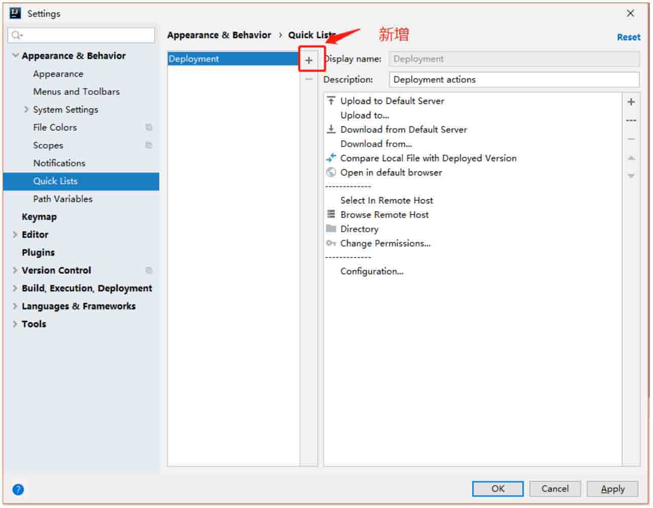 单击File→Settings→Appearance & Behavior→Quick Lists,打开快速列表对话框,如图2-24所示。