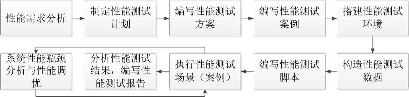 通常情况下,性能测试一般会经历如图1-4-1所示的多个阶段,这些阶段可以和很多性能测试工具对应起来,比如分析性能测试结果可以用LoadRunner的Analysis工具来实现。