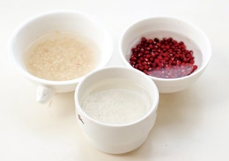 将红豆、高粱、糯米洗净后提前浸泡一夜;花生洗净。