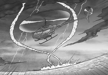 “双龙吸水”是两股合二为一的龙卷风,它的上端和雷云雨相接,下端延伸到水面,内部风速超过每小时200千米,是危险系数相当高的一种天气现象。直升机若与它相撞,一定会化成万千碎片,“校园三剑客”将绝无生还的可能!