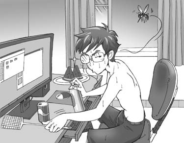 受到攻击的蚊子来不及躲闪,立马摔落下去,没了动静。张小开却不敢放松警惕,在举起杀虫剂连喷数下之后,他还觉得不解气,又抡起苍蝇拍对着躺在一摊药液中的蚊子拍打泄愤。他得意地大叫: