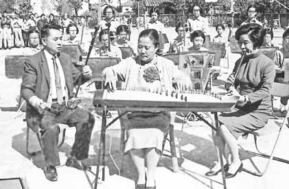 图1 邵梦兰女士于士林中学校长任内,在校庆时演奏古筝