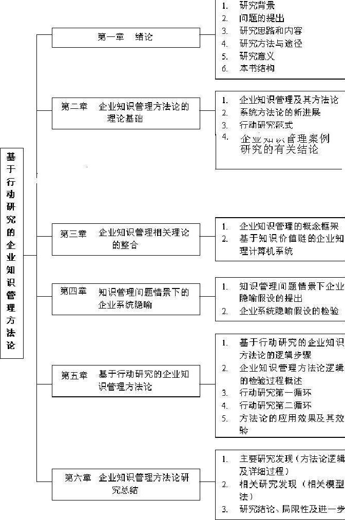 第二章是理论基础部分。主要是通过对与本书密切相关的理论文献进行一个全面的综述和评价,以规范研究的视角对它们进行分析和归纳,以期总结和发现本书独特的理论观点和模型。这些文献主要包括:知识管理及其方法论、系统方法论的新进展(系统与系统隐喻、系统方法论的系统、全面系统干预、软系统方法论和利益协调软系统方法论)以及行动研究的定义、程序、模式和类型等。此外,本章还对企业知识管理案例研究的结果进行了总结,寻找出企业实施知识管理的一些共性经验、知识和问题,以支持后续章节的研究。