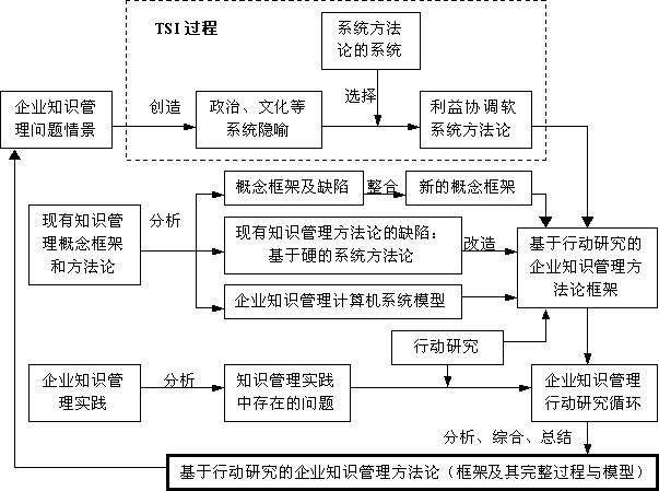 1.对企业知识管理及其方法论、系统方法论的新进展以及行动研究等几个领域的现有理论文献进行归纳分析研究,目的是找出现有的企业知识管理方法论存在的缺陷以实现对它们的改造,同时从系统方法论的新进展以及行动研究范式中寻找到它们对企业知识管理方法论的启示和可资借鉴的内容;