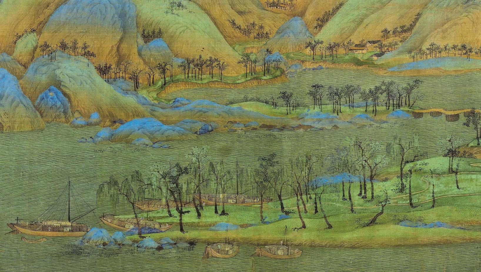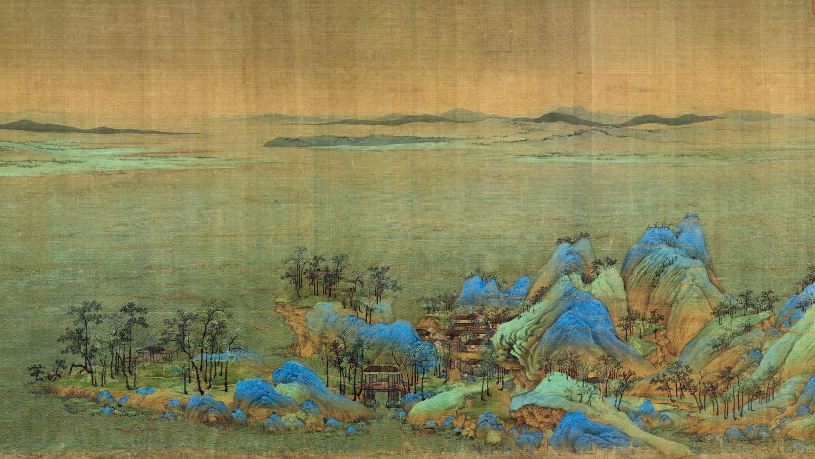 王希孟,《千里江山图》局部,1113年,现藏于北京故宫博物院。