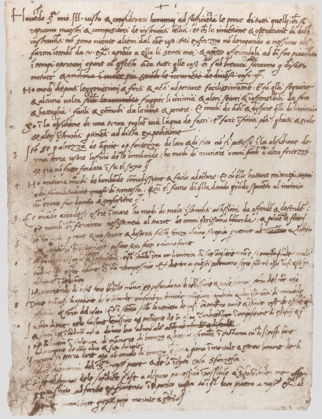 达·芬奇写给米兰大公的自荐信,信中开列他能贡献的数十项技艺。