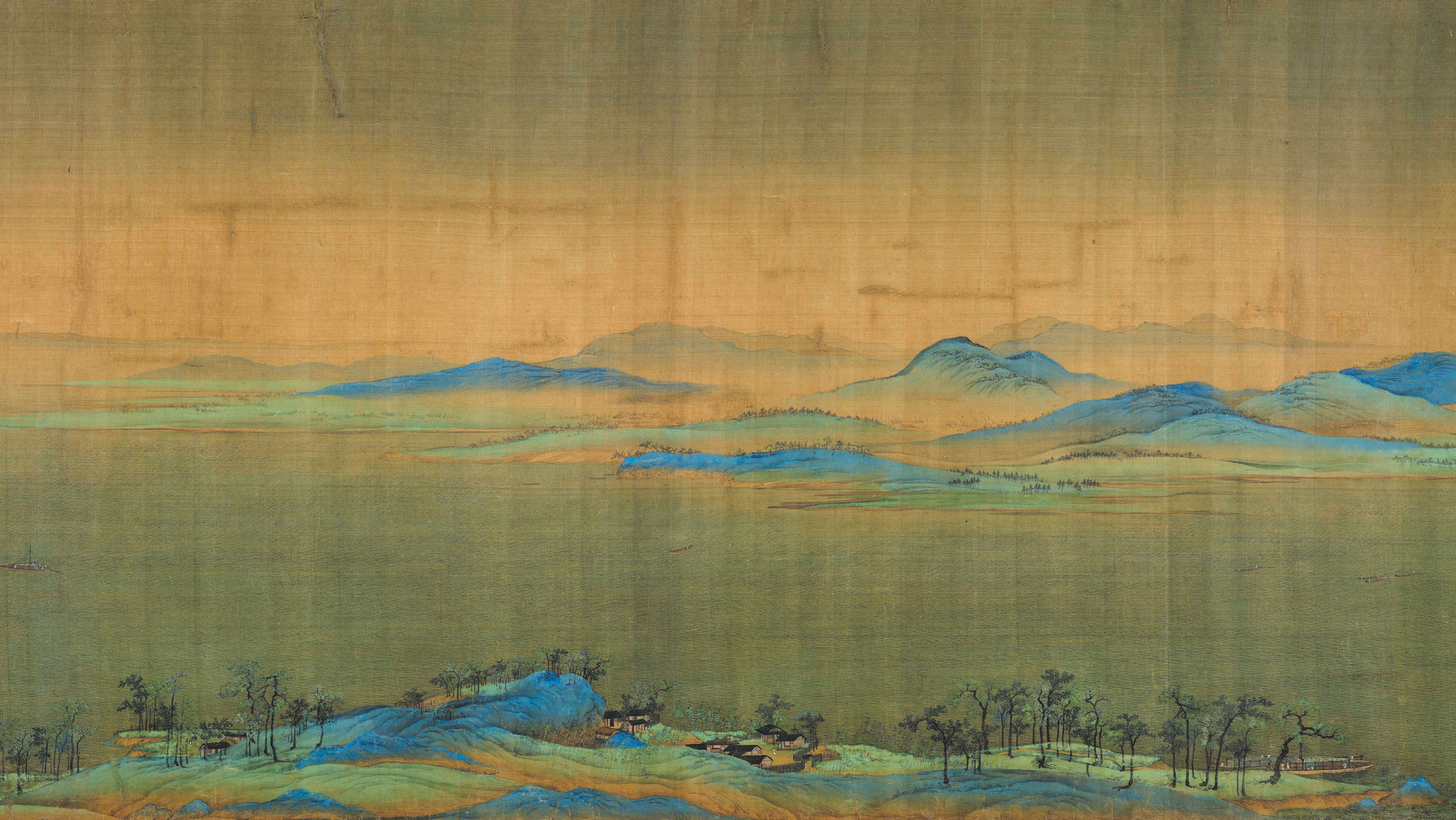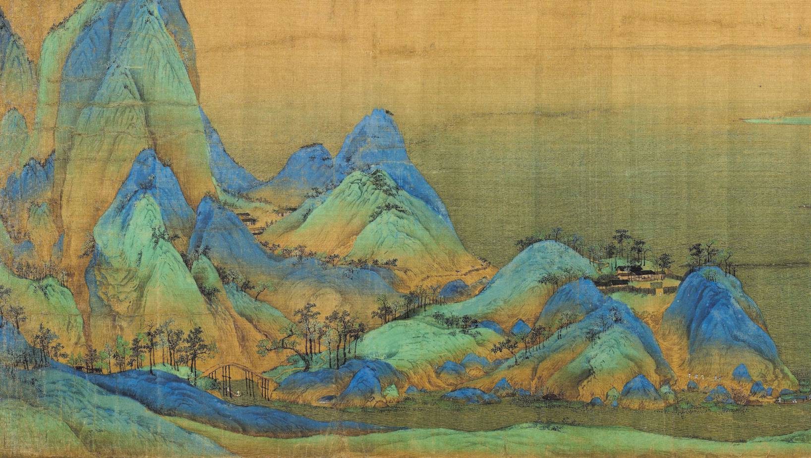 王希孟,《千里江山图》局部,1113年,现藏于北京故宫博物院。
