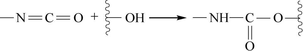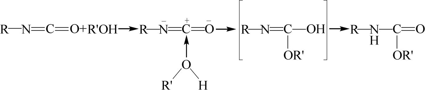上述反应可以在常温下进行,得到的丙烯酸聚氨酯树脂具有高光泽、耐磨、耐水、耐化学腐蚀等性能,目前电子装备中采用的丙烯酸聚氨酯面漆多数通过以上反应获得。