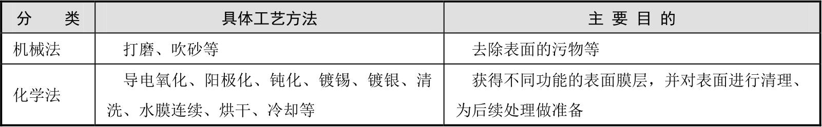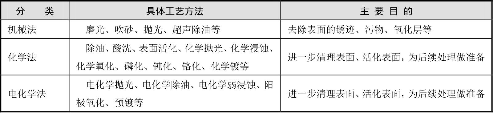 表2-6 常见的金属材料表面预处理工艺方法