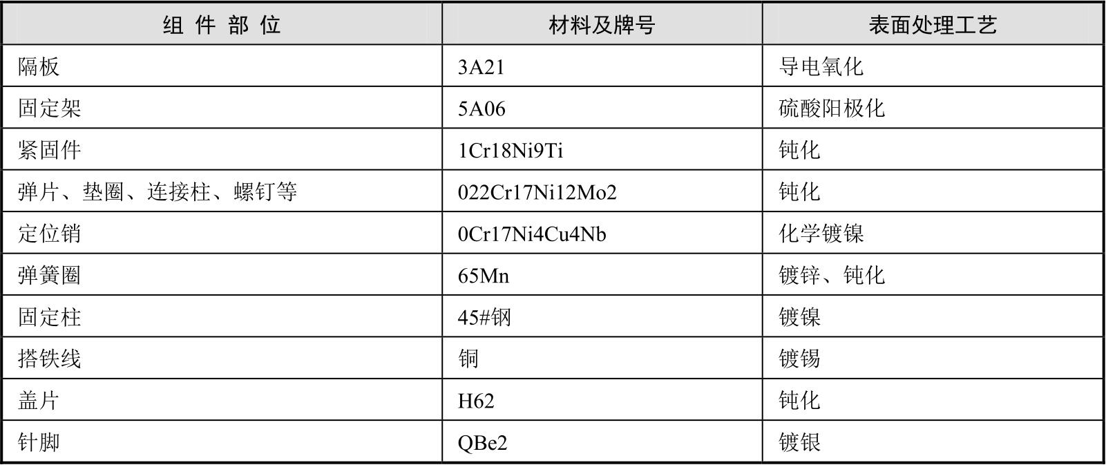 表2-7 屏蔽箱金属材料的表面预处理工艺