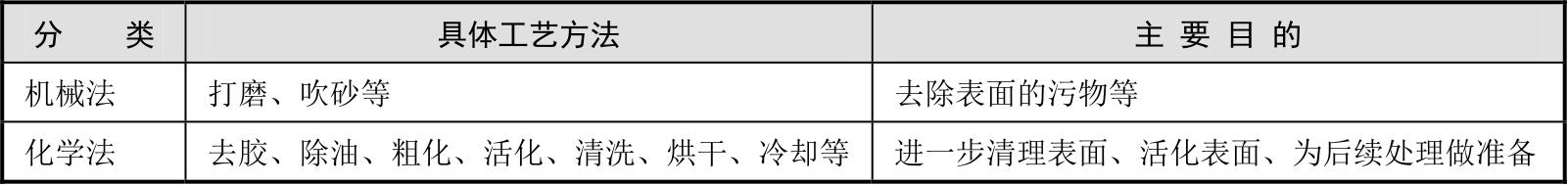 表2-10 常见的复合材料表面预处理工艺方法