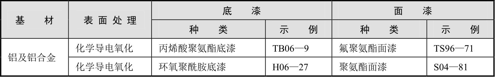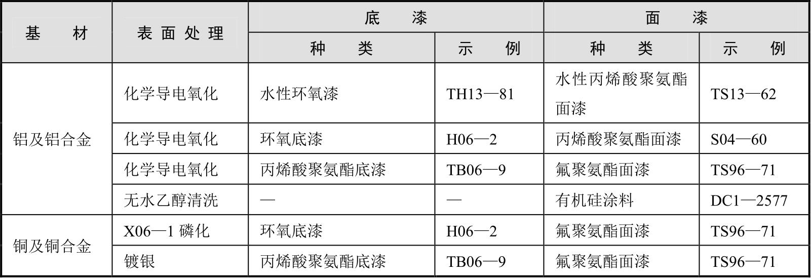 波导组件主要以铜合金、铝合金为底材,防护涂层采取双层防护体系,配套示例如表2-21所示。