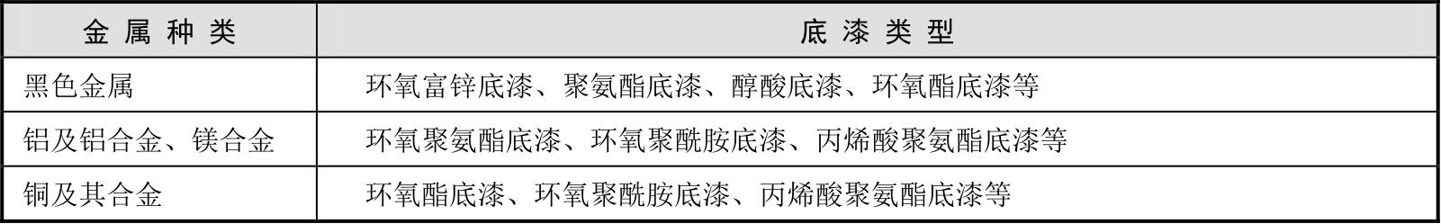 表2-15 不同金属适用的底漆类型