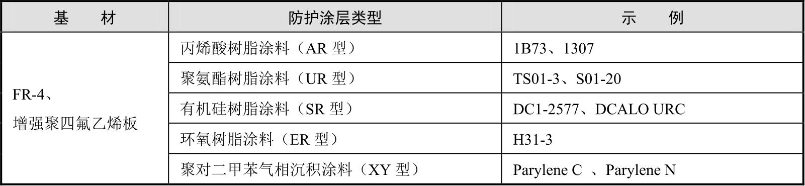 表2-19 印制电路板防护涂层体系