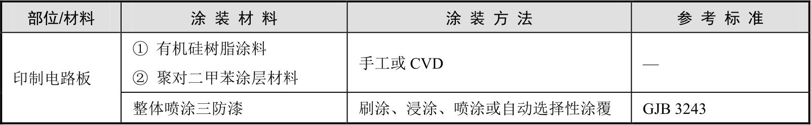 电子装备中的印制电路板的使用环境相对较为封闭,一般不会直接遭受光照、雨水等作用,但其表面组件众多,结构相对复杂,因此涂料除了要满足特殊的功能(导电等),还需要具备较好的防水、耐霉菌、耐盐雾等性能。三防(防霉菌、防潮湿、防盐雾)涂料在印制电路板上有较为广泛的应用 [17] 。