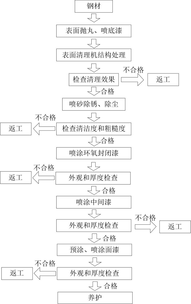 在喷涂前,要根据每道涂层设计干膜厚度,算出湿膜厚度,然后在一块光滑平整的板上进行喷漆试验,测算出湿膜厚度的准确数值。对于多层的涂层体系,要求总厚度达到涂层体系的设计要求,同时控制好每一层的厚度均达到涂层体系的设计要求,并控制涂层厚度的均匀性。许多涂层质量分析证明,腻子的质量好坏可直接影响涂层的质量好坏。腻子本身含有大量填料,附着力与涂料相比较差,固化后在使用中的冷热交替和振动作用下,会加速涂层的开裂和脱落,因此应尽量减少腻子的用量,并坚决杜绝大面积刮涂厚腻子层的现象。此外,应根据涂料的成膜机理及作用,并依据施工时的环境条件,对某些施工技术参数进行合理调整,以达到最优的涂覆效果。例如,对于封闭无机硅酸锌底漆涂层或电弧喷铝的孔隙,必须配套喷涂专用的环氧封闭漆。在气温高于30℃的季节,封闭漆容易出现“干喷”状态,使环氧中层漆和面漆的漆膜鼓泡。要解决上述漆膜弊病,可采取如下措施:在气温低于30℃的早、晚喷涂作业;适当调慢稀释剂的挥发速度,增加封闭漆的渗透能力。