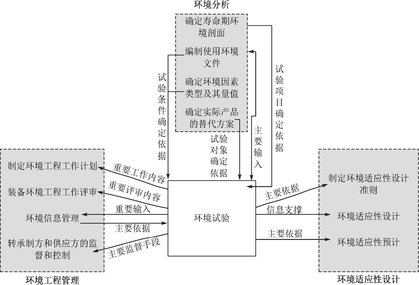图3-2 环境试验与装备环境工程工作项目之间的关系