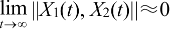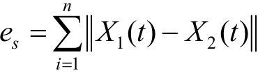 双向耦合或在系统的外部信号驱动下,若 t →∞时两个系统的内部状态 x 和 y 趋向一致,则可以称这两个系统发生了完全同步。其同步误差一般定义为