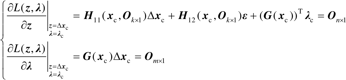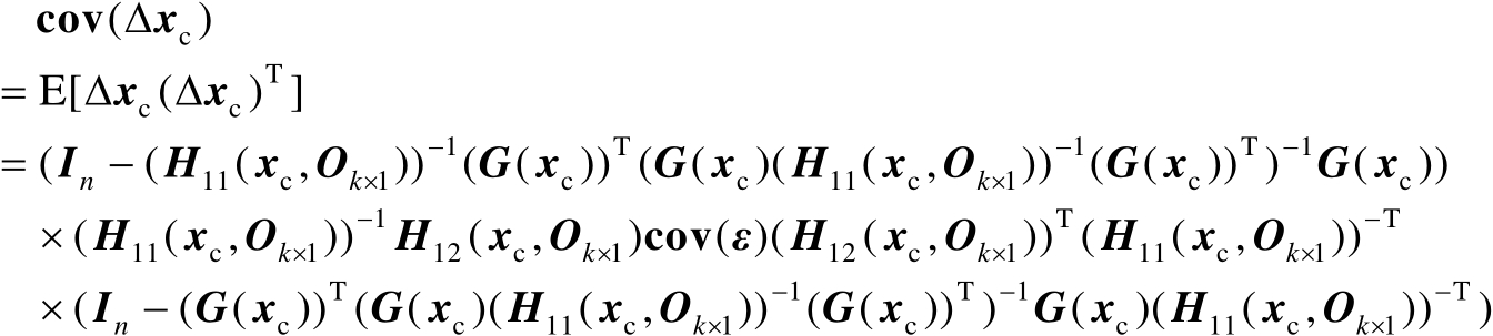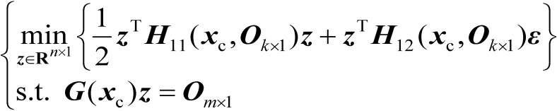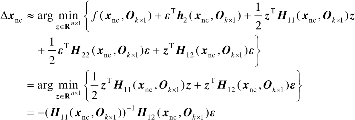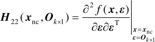 式中, 表示向量函数 的Jacobian矩阵在 处的取值,假设该矩阵是行满秩的。结合式(2.87)和式(2.90)可知,在一阶误差分析框架下,估计误差 应是如下约束优化问题的最优解: