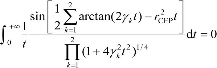 为了简化数学分析,下面以 为例进行讨论。根据上述定义可知,若将误差概率圆环半径(CEP半径)记为 ,则有