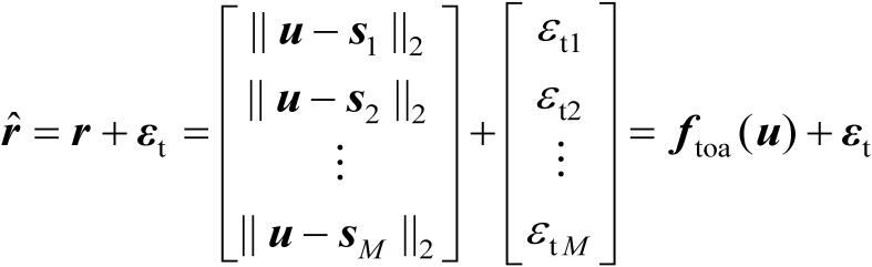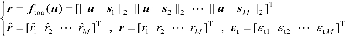 ,它是未知量。由于TOA信息可以等价为距离信息