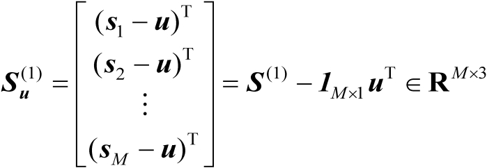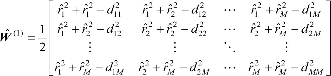 在多维标度分析中,需要构造标量积矩阵。首先利用传感器和辐射源的位置向量定义如下坐标矩阵: