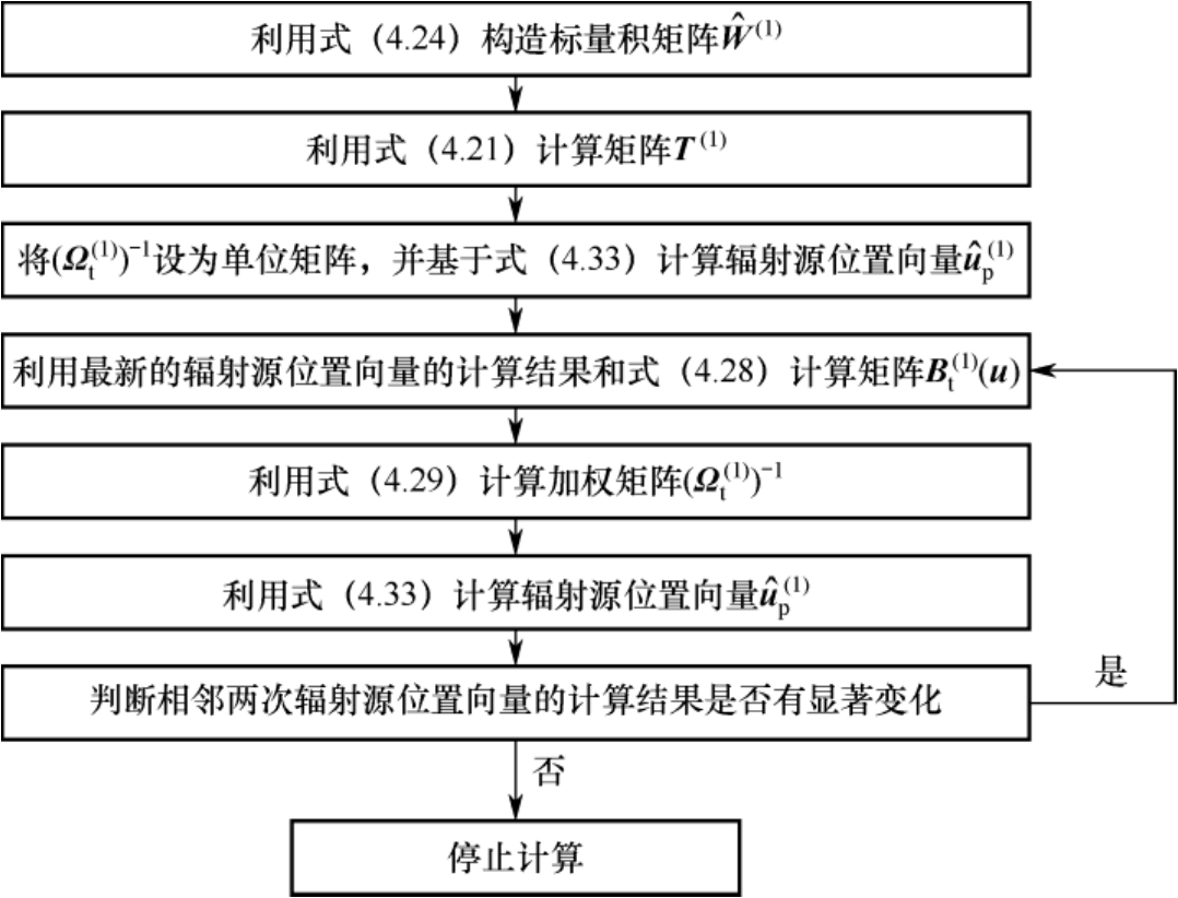 基于式(4.25)和式(4.29)可以构建估计辐射源位置向量