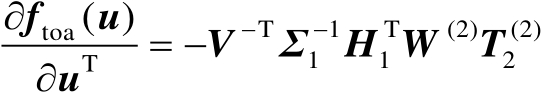 容易验证 为满秩矩阵,并且误差向量 的维数为 ,其与TOA观测量个数相等,此时可以将估计辐射源位置向量 的优化准则表示为