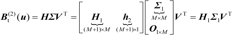 一般而言,矩阵 是列满秩的,即有 。由此可知,协方差矩阵 的秩也为 ,但由于 阶方阵,这意味着它是秩亏损矩阵,所以无法直接利用该矩阵的逆构建估计准则。下面利用矩阵奇异值分解重新构造误差向量,以使其协方差矩阵具备满秩性。