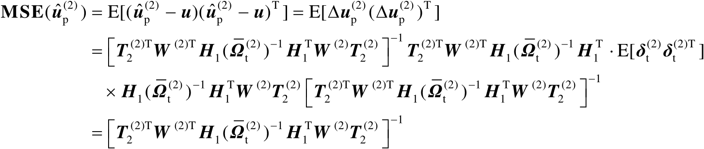 下面将推导估计值 的理论性能,主要是推导估计均方误差矩阵,并将其与相应的克拉美罗界进行比较,从而证明其渐近最优性。这里采用的性能分析方法是一阶误差分析方法,即忽略观测误差 的二阶及其以上各阶项。