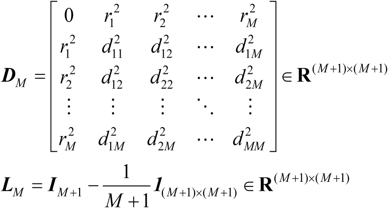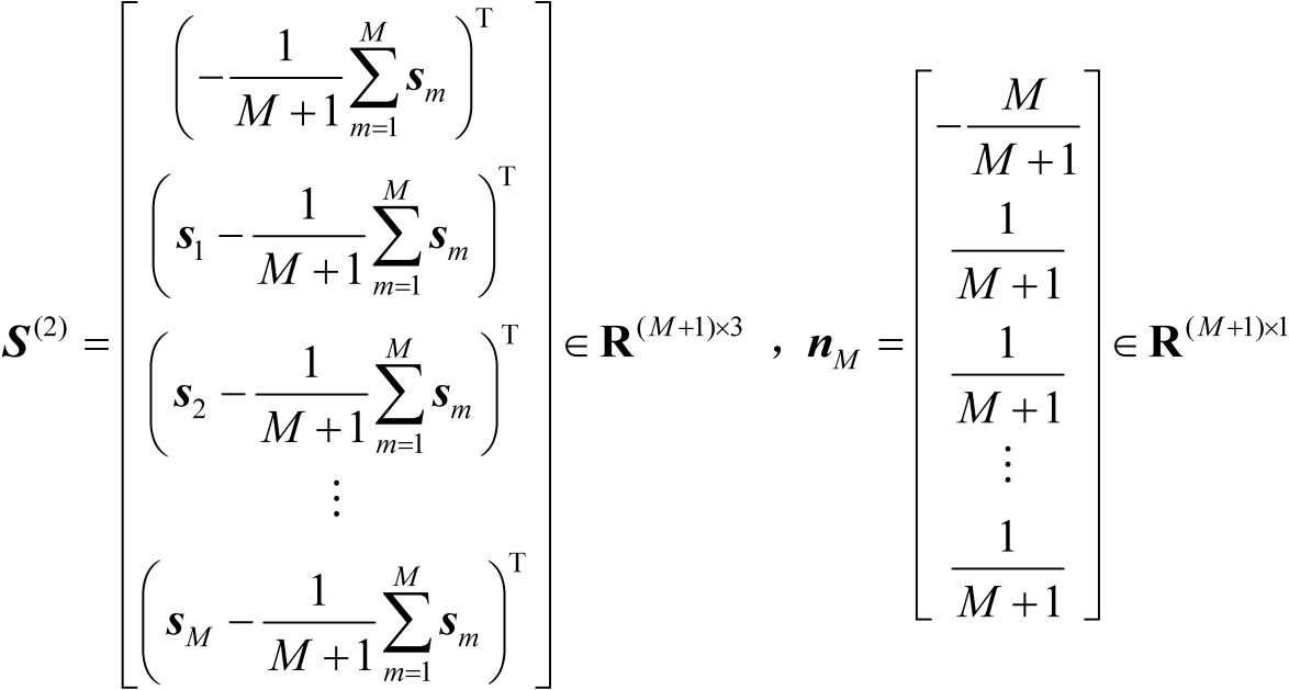 利用传感器和辐射源的位置向量定义如下坐标矩阵