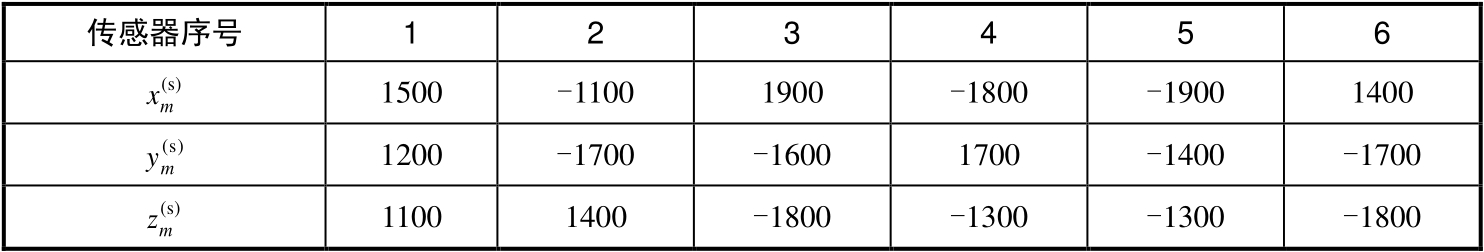 假设利用6个传感器获得的TOA信息(也即距离信息)对辐射源进行定位,传感器三维位置坐标如表4.2所示,距离观测误差