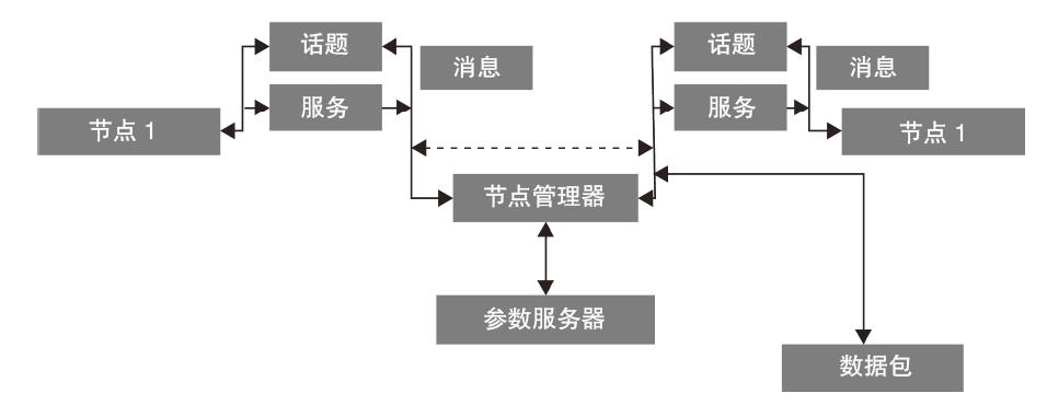 图1.6展示了ROS计算图中的各种概念。以下是对每个概念的简单描述: