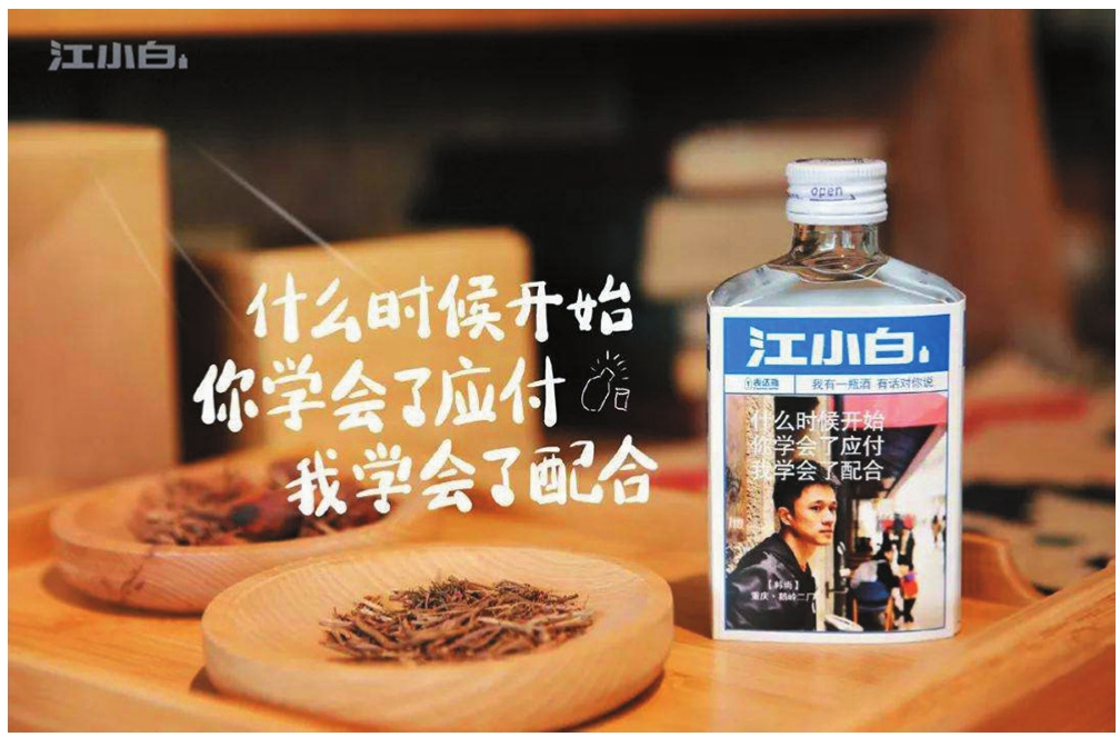 江小白品牌成立于2012年,而大家真正认识江小白却是在2015年。那一年,几乎在一夜之间,江小白的“表达瓶”火遍大江南北,瓶身上的文案被很多年轻人奉为“金句”。“你只来了一下子,却改变了我一辈子!”“什么时候开始你学会了应付,我学会了配合”“成长就是将哭声调成静音,约酒就是将情绪调成震动!”“所谓孤独就是有的人无话可说,有的话无人可说!”……诸如此类或扎心或温暖的句子,在江小白“表达瓶”系列文案中不胜枚举,如图2-1所示。